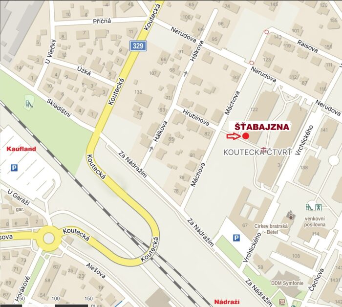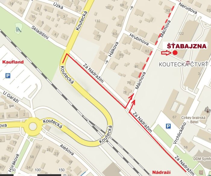 Z nádraží je to cca 900m, zvládneš to asi za 10min pěšky. Cesta je jednoduchá. Projdeš podchodem na ulici Za nádražím a jdeš rovně, dokud neodbočíš vpravo do ulice Máchova.